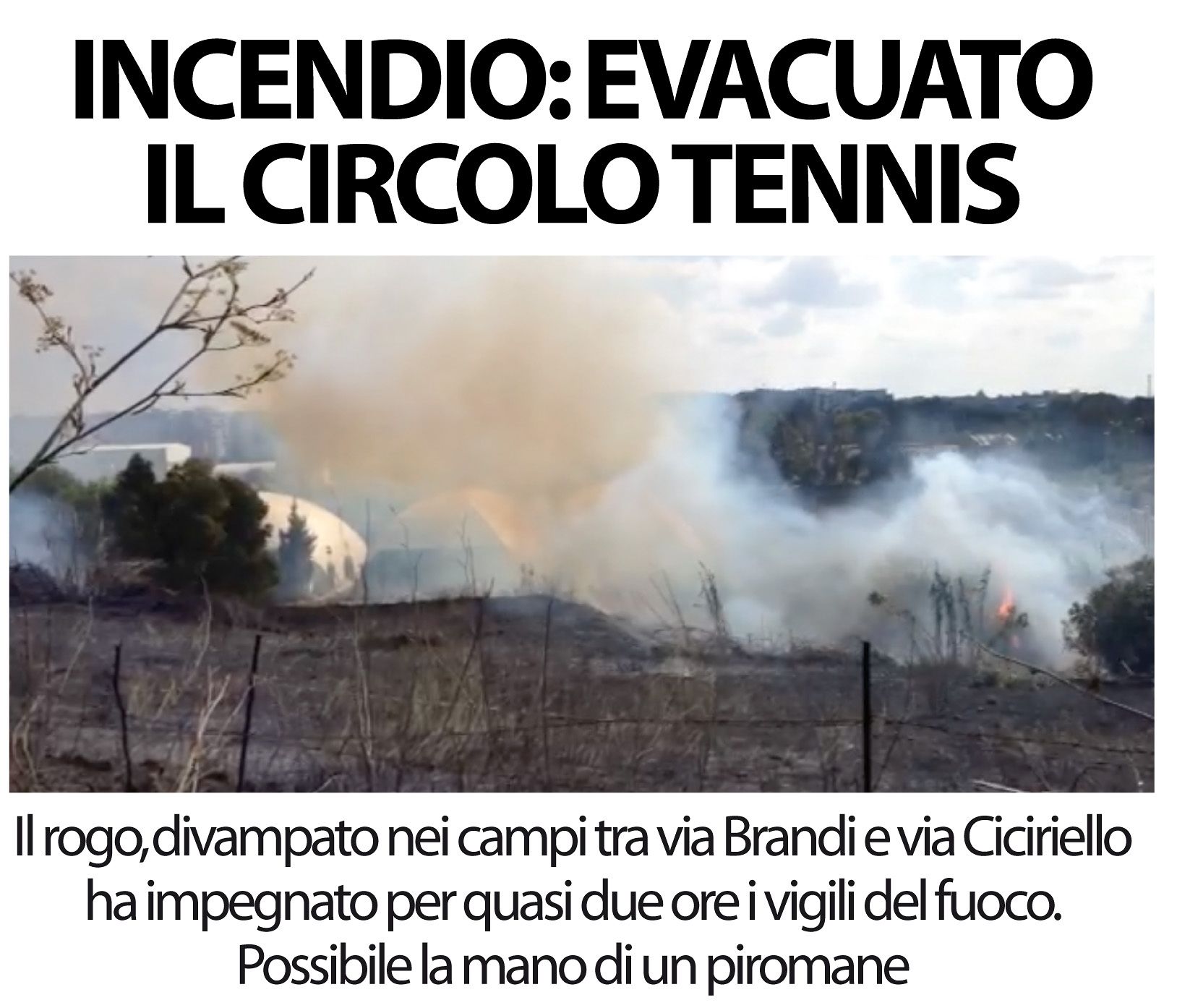 Non si esclude che sia stata la mano di un piromane a causare il vasto incendio che è divampato nel primo pomeriggio di oggi in prossimità del Circolo tennis di Brindisi minacciando la struttura sportiva che in pochi minuti è stata evacuata così come la piscina della Marina Militare di via Ciciriello. Al momento sono ancora a lavoro le squadre dei vigili del fuoco del comando provinciale per domare le fiamme che hanno distrutto una vasta fascia di vegetazione tra via Brandi e via Ciciriello.