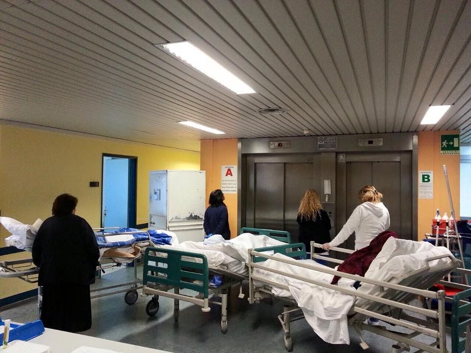 Barelle con pazienti in fila anche 20 minuti davanti ai pochi ascensori funzionanti del Perrino