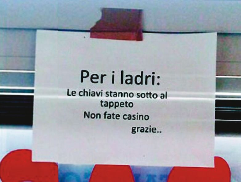 Il cartello è incollato nella tabaccheria della piccola stazione di servizio che negli ultimi mesi è stata presa di mira più volte nonostante di notte ci sia davvero poca roba da rubare. Porte sfondate, vetri in frantumi, finestre sradicate. Per il momento il cartello ha funzionato. Nel senso che nuove effrazioni non ci sono state. Il benzinaio ci spera.