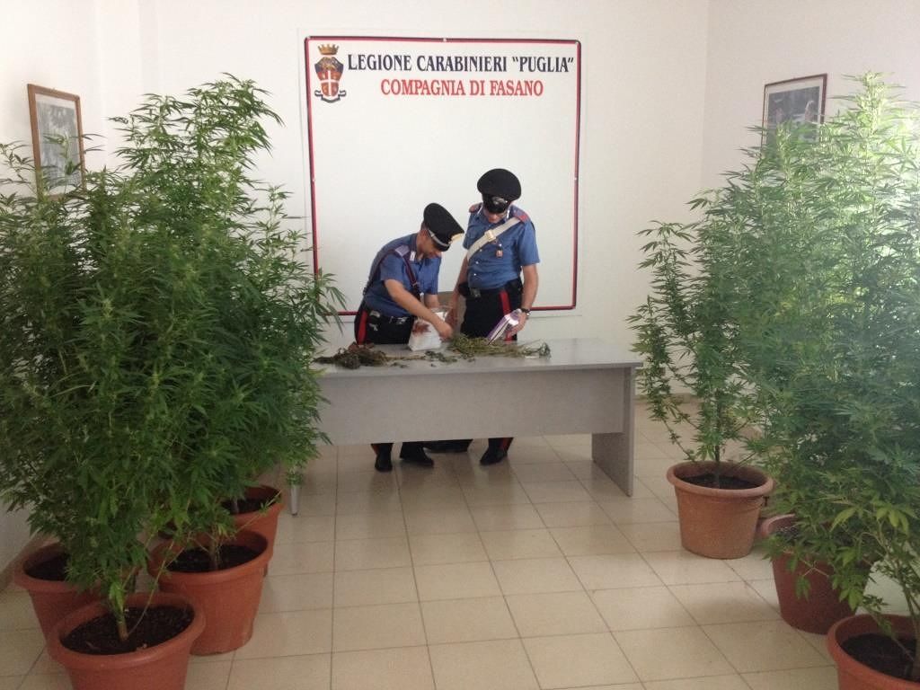 I carabinieri della stazione di Fasano hanno tratto in arresto in flagranza di reato Domenico Gimmi, 36enne del posto, per coltivazione e produzione di sostanze stupefacenti. L’uomo nel corso di una perquisizione domiciliare è stato sorpreso a coltivare in casa una piantagione di marijuana costituita da tredici piante in vari stati di maturazione e di diverse altezze. Nella circostanza, inoltre, è stato rinvenuto un fascio di rami essiccati della medesima sostanza stupefacente. L’arrestato è stato posto agli arresti domiciliari.