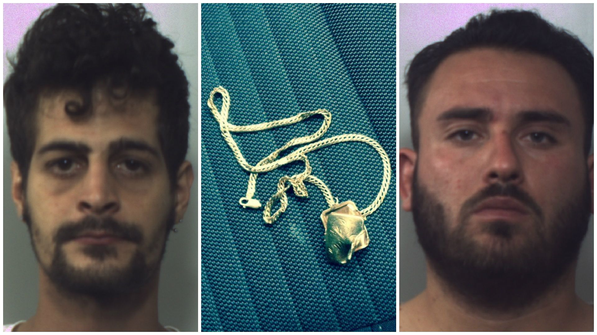 (da sinistra nelle foto Chirico e Curto. Nella foto centrale una delle collanine rapinate)