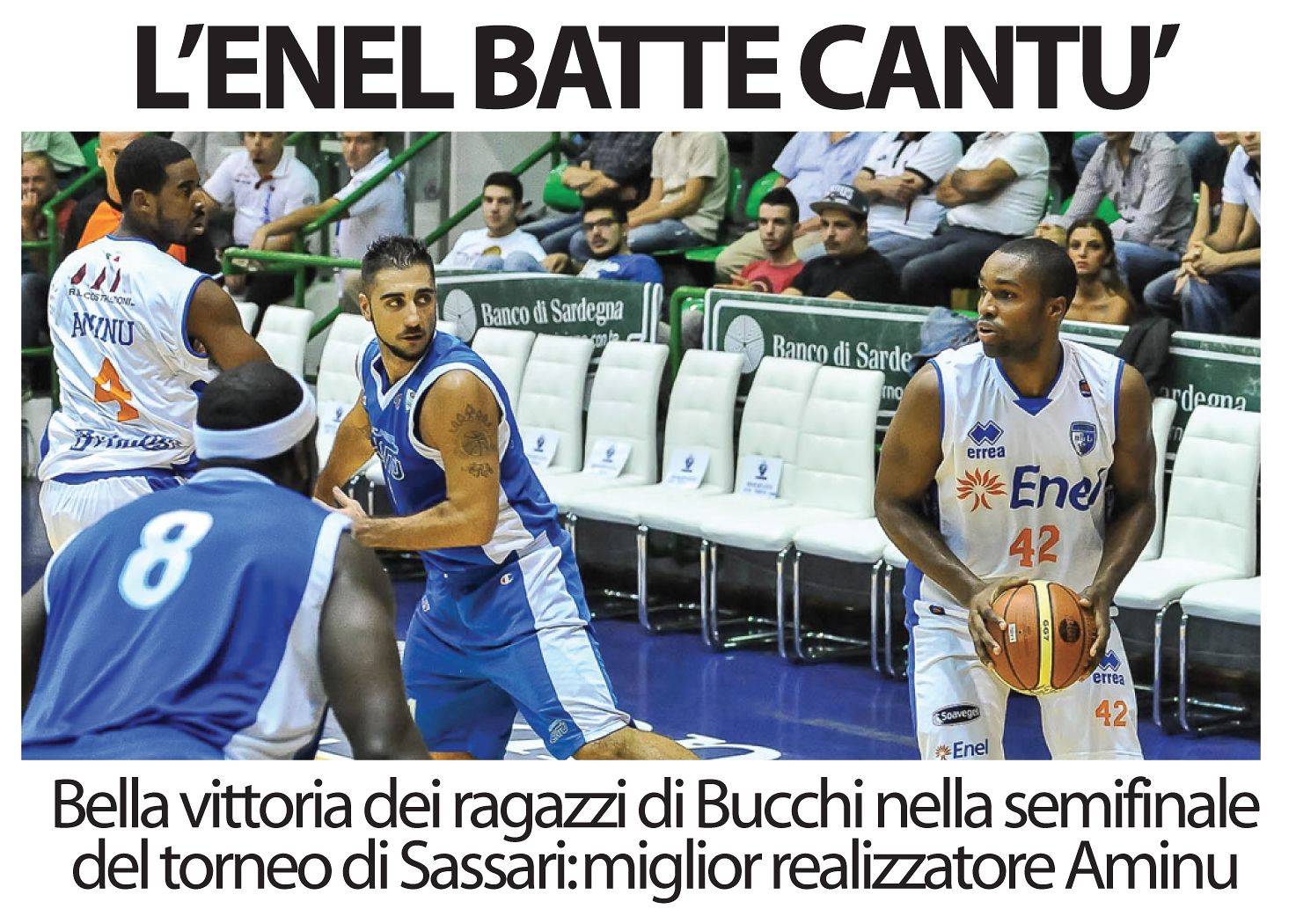 L’Enel Brindisi batte la Lenovo Cantù per 68 a 62 nel Torneo Città di Sassari – Mimì Anselmi e vola in finale, in attesa di conoscere il risultato tra Sidigas Avellino e i padroni di casa del Banco di Sardegna. Tanta attesa per questo ultimo quadrangolare prestagionale, in quanto l’esordio in campionato è ormai alle porte,. Bucchi sceglie di partire con Dyson, Lewis , Snaer , James e Todic lasciando inizialmente in panchina il neo arrivato Alade Aminu.