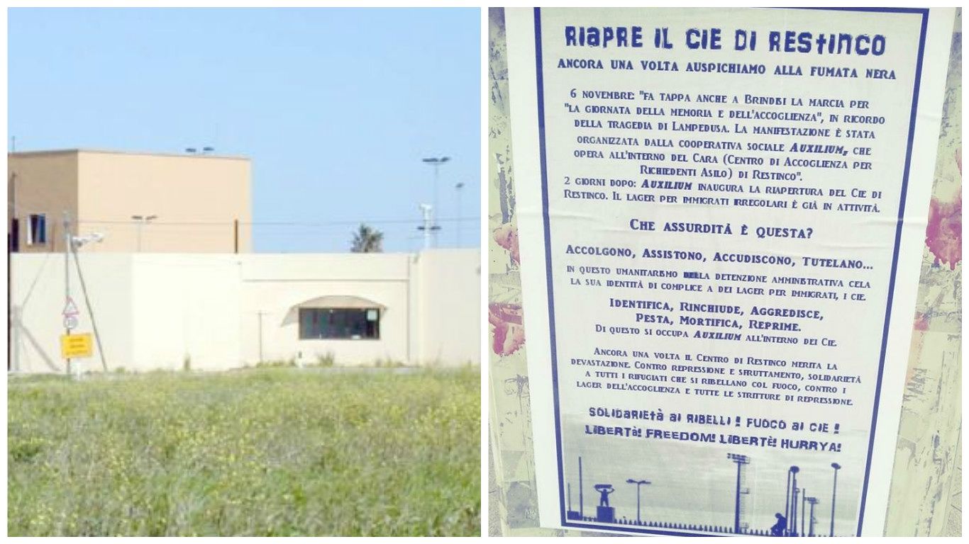 La manifestazione è stata preceduta nei giorni scorsi da un inquietante manifesto abusivo appiccicato in varie zone della città, in cui si predica solidarietà agli extracomunitari detenuti nel Cie ed è scritto testualmente: “Ancora una volta il centro di Restinco merita la devastazione, contro repressione e sfruttamento, solidarietà a tutti i rifugiati che si ribellano col fuoco, contro i lager dell’accoglienza e tutte le strutture di repressione. Solidarietà ai ribelli, fuoco al Cie”.