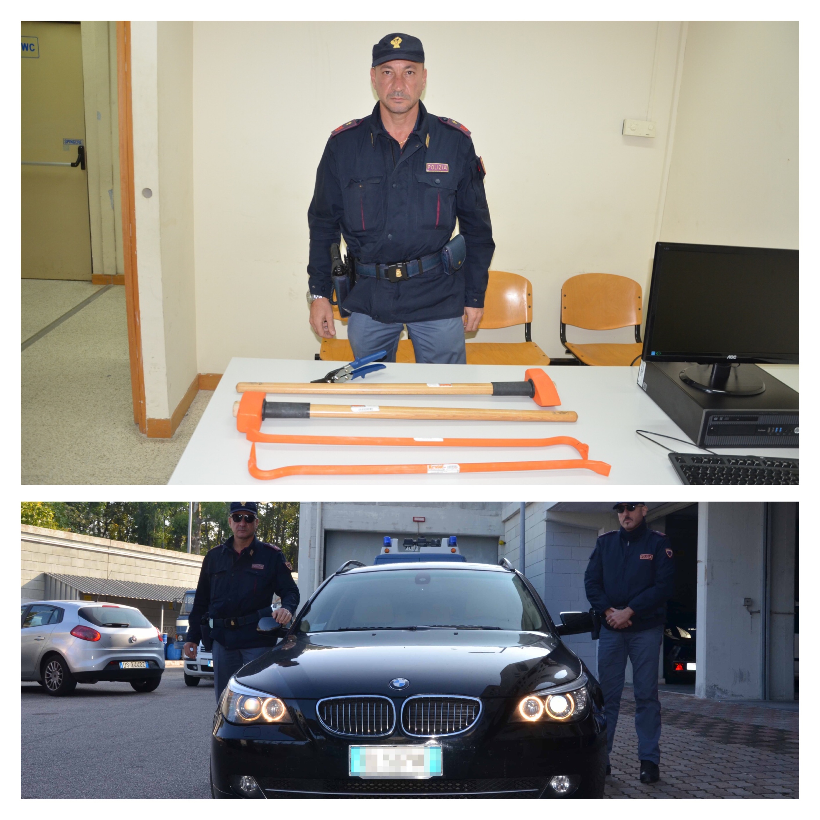 Il veicolo è risultato rubato in Brindisi pochi giorni fa ma, a confermare l’intuito degli agenti, sono state due mazze ferrate, due piedi di porco ed una cesoia occultate nel bagagliaio.
