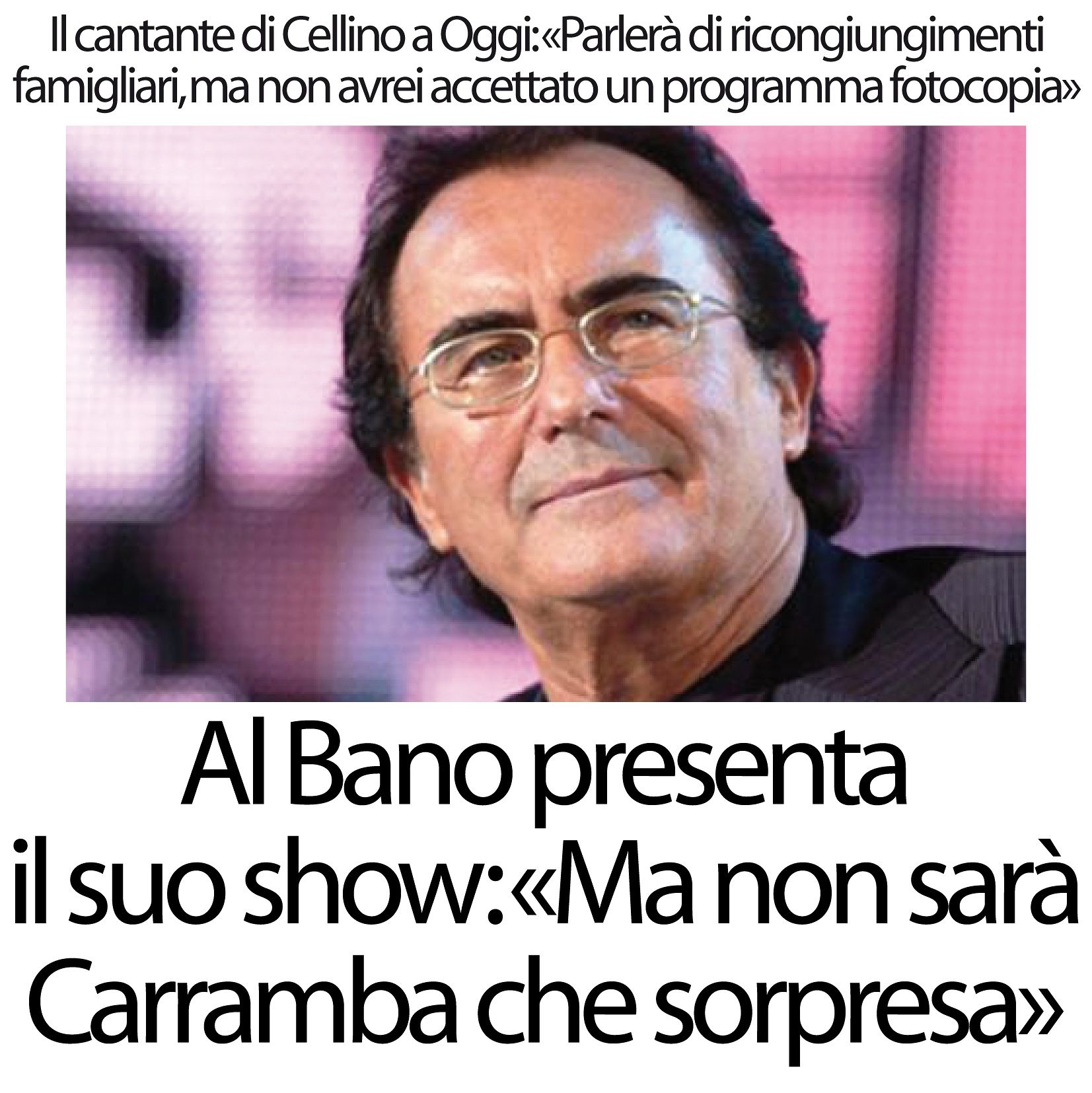 A chi fa notare le analogie con il programma di Raffaella Carrà, lo storico Carramba, Al Bano risponde: “Questo sarà totalmente diverso. Porto rispetto alla Carrà e al suo fortunato programma ma non avrei mai accettato di condurre uno show fotocopia”.