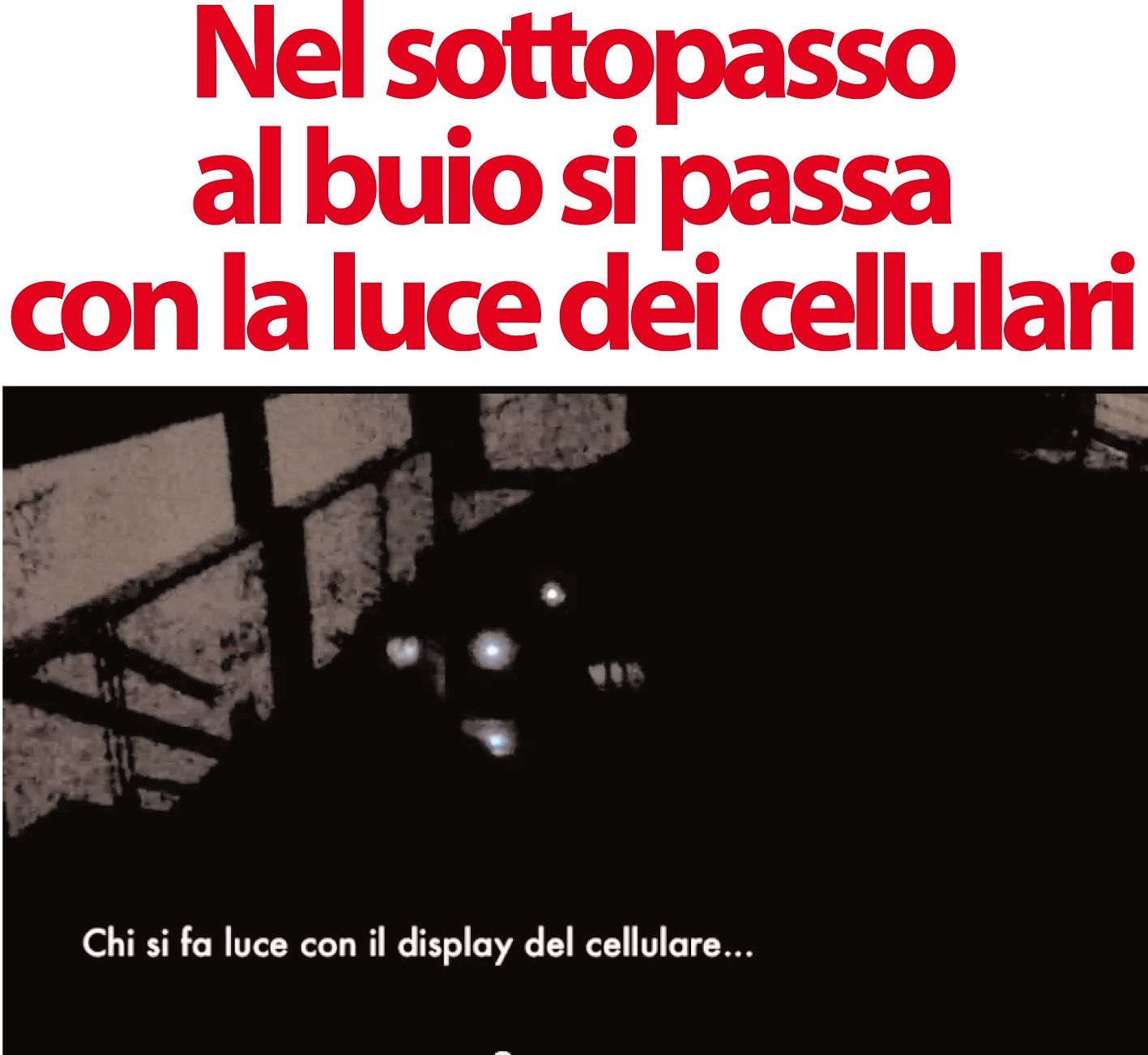 Nel sottopasso al buio si passa con la luce dei cellulari