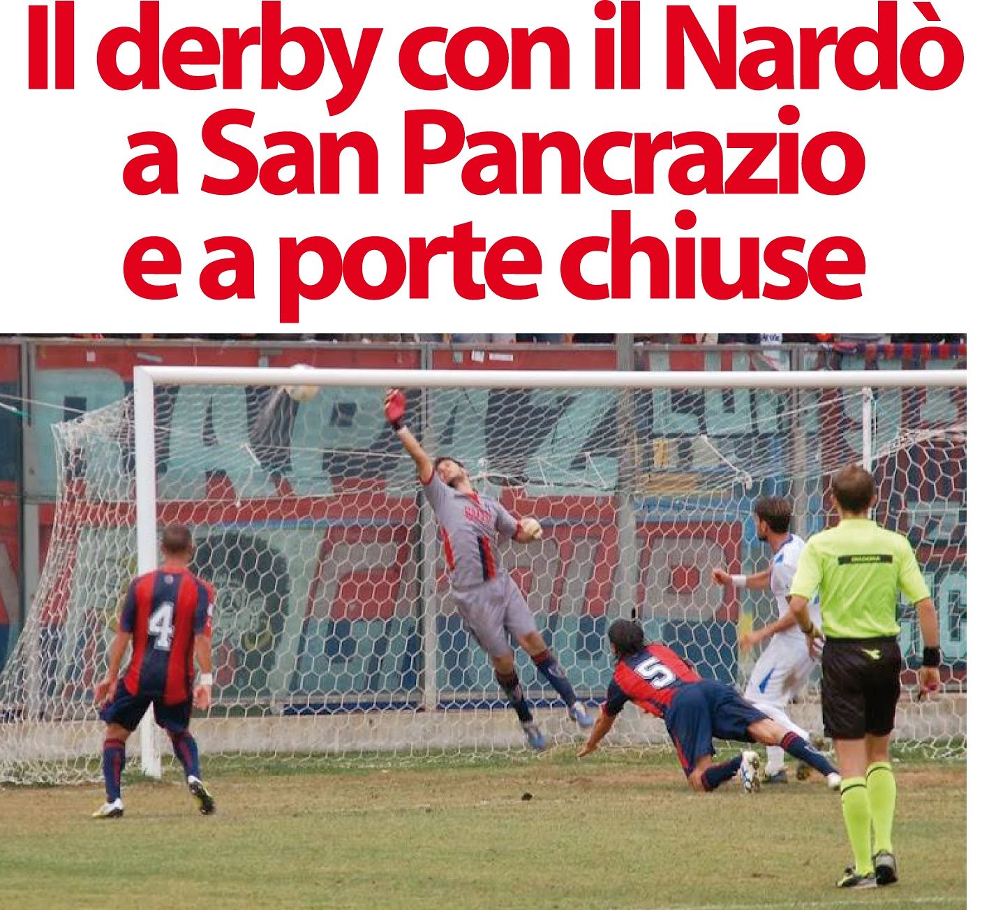 Il derby in programma per domenica prossima tra Nardò e Brindisi si disputerà sul campo neutro di San Pancrazio Salentino, stante l’indisponibilità dell’impianto neretino, interessato dalla risemina del manto in erbetta naturale e questa, di per se, sarebbe stata una buona notizia per i tifosi biancazzurri i quali, percorrendo i pochi chilometro che separano la città dal comune di San Pancrazio, avrebbero potuto assistere dal vivo, almeno in mille, alla gara, il che faceva sfregare le mani anche al cassiere del Nardò che avrebbe potuto contare su un incasso di almeno 10.000 euro che, in periodo di vacche magre, non è assolutamente da disprezzare.
