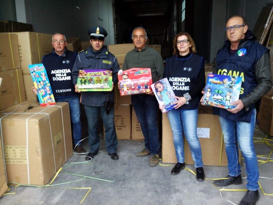 La guardia di finanza ha sottoposto a sequestro un carico di 4.360 giocattoli contraffatti e 50.400 generatori di corrente privi di etichettatura. La merce è stata scovata nel porto di Brindisi su un tir che è risultato essere diretto a un commerciante cinese di Roma. I giocattoli riproducono protagonisti di film di successo e di serie televisive.