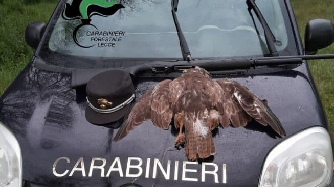 I Carabinieri Forestali del Nucleo di Lecce hanno denunciato alla Procura della Repubblica salentina un bracconiere 59enne colto in flagranza di reato: in particolare, i militari, in pattugliamento appiedato in contrada “Borgo Mortella” in agro del capoluogo, dopo aver udito degli spari e mentre si avvicinavano ad un gruppo di cacciatori, hanno visto uno di questi esplodere un colpo ed abbattere un esemplare adulto di poiana, uccello rapace diurno tutelato dalla Convenzione internazionale di Washington (CITES) del 1973, che lo colloca tra le specie di massima protezione (divieto di prelievo, possesso e commercio; consentita la sola detenzione per scopi scientifici autorizzati).