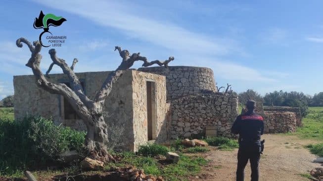 L’ultimo intervento è stato eseguito in agro di Alliste, in località Malaspina. I militari del Nucleo Forestale di Gallipoli, con il supporto del drone in dotazione, hanno individuato un cantiere edile attivo per la realizzazione, in fase di ultimazione, di un fabbricato monovano in pietra di circa 20 metri quadrati, realizzato in aderenza a una tipica pajara. All’esterno era stato inoltre predisposto un piazzale livellato e spianato con pietrisco, per una superficie complessiva di circa 350 metri quadrati.