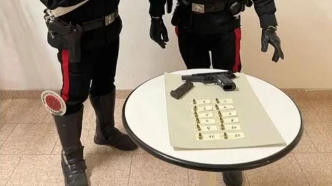 Nel corso di un controllo stradale, i militari hanno ispezionato un furgone, con a bordo i due uomini. All’esito delle perquisizioni personali e veicolare, è stata rinvenuta, nel vano centrale portaoggetti, una pistola semiautomatica marca “Beretta” cal. 9×19, con il caricatore inserito, contenente 11 cartucce, più un ulteriore colpo in canna. Si tratta di un’arma della stessa tipologia di quelle in dotazione alle Forze di Polizia.