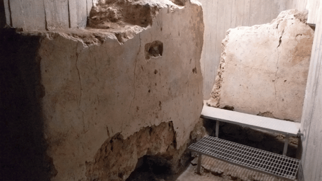 Alla suggestiva area archeologica si accede attraverso il portello posto sul pavimento, quindi con una scala in metallo e una apposita passerella che permette di attraversare uno dei muri romani.