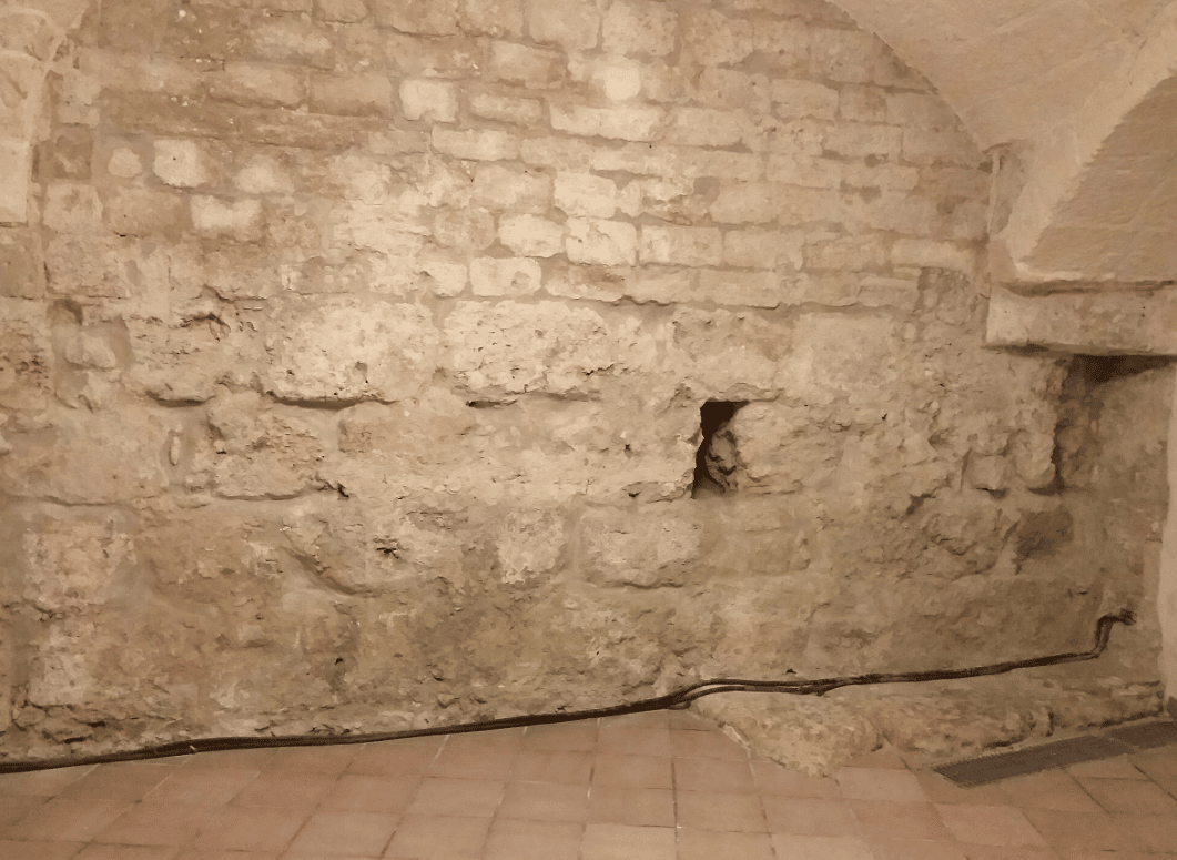 L’intervento di scavo fu molto impegnativo, divenne necessario persino procedere alla realizzazione di spessi tramezzi in cemento armato di sottofondazione per sostenere e non compromettere la stabilità dell’edifico moderno, composto da piano terra e primo piano. L’areazione dell’ambiente ipogeo venne garantita dalle griglie presenti sulla botola e sull’apertura nel piano del locale, realizzata in corrispondenza del muro in opera quadrata. Fu inoltre inserito un piccolo estrattore d’aria.