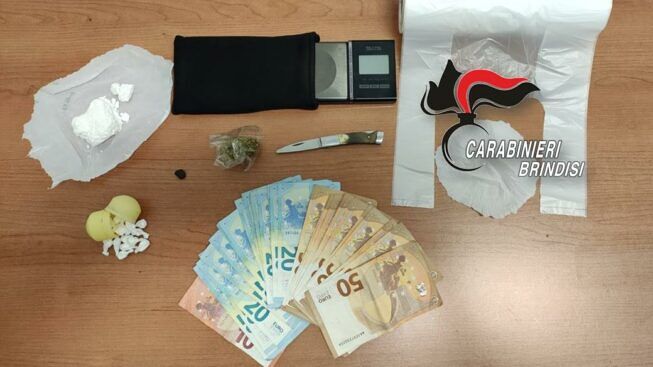 A Ceglie Messapica, i carabinieri della locale Stazione hanno proceduto all’arresto un 45enne del luogo per detenzione di sostanze stupefacenti ai fini dello spaccio. I militari, coadiuvati da personale della Polizia Locale, a seguito di una perquisizione domiciliare eseguita presso l’abitazione dell’uomo, hanno rinvenuto e posto sotto sequestro 35 grammi di cocaina, 0,40 grammi di hasscisc, 2,20 grammi di marijuana, materiale per il confezionamento delle dosi e la somma di 860 euro.