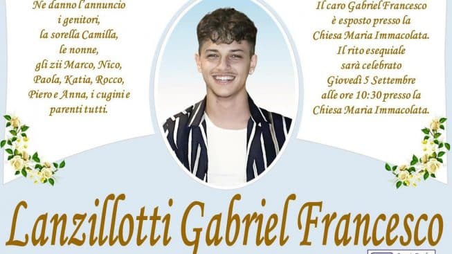 “L’intera comunità scolastica dell’Istituto Agostinelli si stringe intorno alla famiglia Lanzillotti per la prematura scomparsa del nostro amato studente Gabriel.