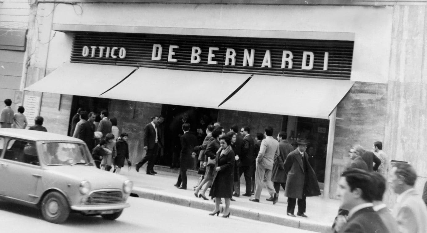 Tutto iniziò nei primi anni ‘30 del Novecento con Luigi De Bernardo, che per un errore materiale di scrittura all’anagrafe di Brindisi venne modificato in De Bernardi, prima di essere rettificato e riportato all’originale. Nato di Taranto, Luigino si trovò a lavorare come dipendente in un piccolo negozio di cine-foto appena aperto in Corso Garibaldi (dove oggi è lo store del basket). Era la succursale brindisina dalla popolare Ottica Barrella del capoluogo jonico, qui si potevano trovare anche alcune montature, giusto un paio di modelli maschili e femminili, sulle quali venivano applicate le lenti. In quegli anni gli occhiali venivano intesi esclusivamente come mezzo utile alla vista e per la protezione degli occhi, solo col passare degli anni furono considerati un importante accessorio di stile e di personalità, specialmente dal punto di vista sociale.