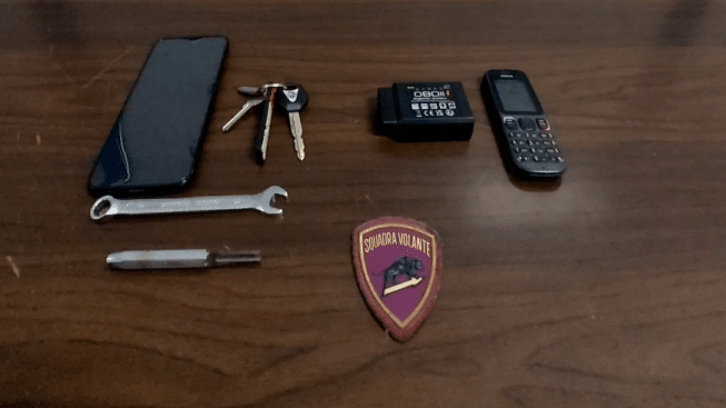 Sono stati, quindi, sottoposti a perquisizione personale che portava al rinvenimento e al sequestro di un decodificatore per la diagnostica delle centraline dei veicoli, di due cellulari, su uno dei quali era stata scaricata un’applicazione riguardante il controllo delle targhe, una chiave inglese e un grimaldello, che solitamente vengono utilizzati in coppia per forzare i nottolini di accensione e le serrature delle macchine. I due uomini non riuscivano a dare spiegazioni in merito al materiale in loro possesso e venivano, perciò, denunciati a piede libero.