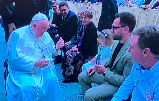 Così Emma ha potuto consegnare il bigliettino nelle mani del Papa. Francesco si è intrattenuto qualche secondo con la bambina e tutto ciò è stato di estremo conforto per Giacomo e di grande emozione per don Donato che osservava la scena dal grande schermo. Emma ha chiesto a Bergoglio di pregare per loro.
