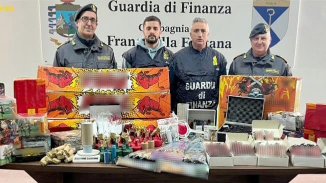 Un uomo di Francavilla Fontana è stato arrestato e segnalato alla Procura della Repubblica di Brindisi con l’accusa di detenzione, fabbricazione, commercio abusivo ed omessa denuncia all’Autorità di materiale esplodente a seguito delle attività investigative dei militari del Comando Provinciale della Guardia di Finanza di Brindisi: l’uomo, senza essere in possesso della licenza per la vendita, deteneva in un’abitazione situata in un edificio ad alta densità abitativa e in altri luoghi circa 100 kg di fuochi d’artificio, alcuni dei quali sprovvisti della marcatura CE e della classificazione Ministeriale italiana. Tutto il materiale è stato sottoposto a sequestro. Nel corso dell’operazione, sono stati scoperti anche 16 pacchetti di sigarette di contrabbando e 18 sigarette elettroniche usa e getta prive del contrassegno dei Monopoli di Stato. Il soggetto è stato segnalato all’Agenzia delle Dogane e dei Monopoli di Bari per contrabbando.