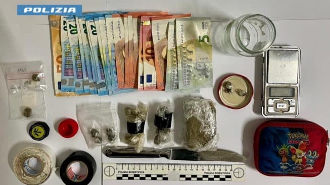 A carico del minore noto è stata eseguita poi una perquisizione domiciliare che ha permesso di rinvenire un totale di circa 100 grammi di hashish di cui parte già confezionata e divisa in dosi, un bilancino di precisione e materiale utile al confezionamento. Avendo rinvenuto anche dei soldi in contanti nella disponibilità del minore e dopo aver raccolto tutti gli elementi utili per ipotizzare a carico del minore il delitto di detenzione ai fini di spaccio di sostanza stupefacente, su disposizione del Pubblico Ministero in turno presso la Procura della Repubblica del Tribunale per i Minorenni, lo stesso veniva dichiarato in stato di arresto.