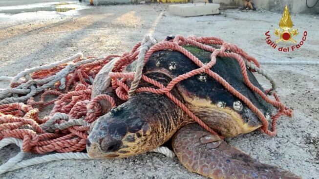 Ai salvataggi su terra ferma si sommano anche quelli in mare, spesso i nostri vigili del fuoco intervengono anche nel recupero di creature marine in difficoltà. Le tartarughe Caretta Caretta sono una presenza costante nei soccorsi di animali, le povere testuggini a causa dell’inciviltà dell’essere umano spesso restano intrappolate in sacchi di plastica o nelle reti abbandonate dai pescatori. Ma capita anche che perdano l’orientamento e finiscano chiuse in luoghi dove inevitabilmente troverebbero la morte. Anche in questi casi i vigili del fuoco non mancano di intervenire. Qualche tempo fa uno splendido esemplare di tartaruga Caretta Caretta era rimasta intrappolata nelle vasche del Petrolchimico a Brindisi, sul posto intervennero i vigili del fuoco del Comando provinciale ed il gruppo sommozzatori di Bari. I vigili del fuoco del comando provinciale furono allertati dalla Capitaneria di Porto che segnalava la presenza di una tartaruga in difficoltà. Il rettile marino, molto probabilmente, era finito in una delle vasche di raffreddamento dopo essere stato risucchiato dalle pompe di aspirazione.