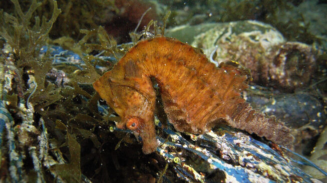 Tornando, dopo questa breve parentesi, alla nostra immersione, proprio lì vicino fino ad un paio di anni addietro vi era anche una piccola colonia di cavallucci marini, di cui uno di un bel giallo canarino, che fu sfrattata senza preavviso proprio dall’opera di uno di questi pescatori di frodo che devastò, a suon di scalpellate, alla spasmodica ricerca del frutto di mare proibito, la parete rocciosa dove questi curiosi animaletti abitavano ed è da allora che, nonostante le decine di immersioni fatte sul posto, sia di giorno che di notte, sia di estate che di inverno, non si vede più un Ippocampo in questa zona del litorale brindisino. Tant’è che, se voglio avere la certezza di incontrarne qualcuno, mi tocca spostarmi sullo Ionio dove, anche in aree portuali ed in mezzo alla plastica, queste piccole creaturine, riescono a sopravvivere meglio che sul versante adriatico.