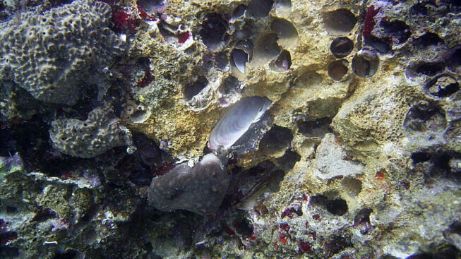 Man mano che aumenta la profondità dell’immersione, aumentano i rifiuti plastici che incontriamo ed aumenta ulteriormente il malumore dal momento che noto un altro tratto di scogliera che fino a Natale era sicuramente integro e ricoperto da bel coralligeno, scalpellato e distrutto dal datteraro di turno per almeno una decina di metri lineari.