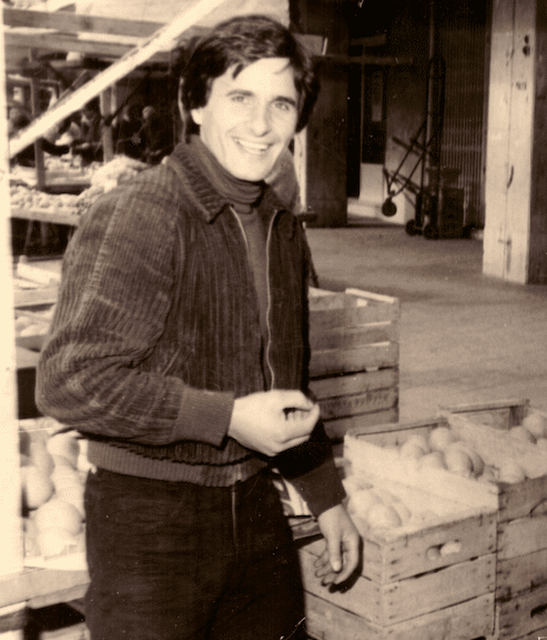 Dopo una breve esperienza come primo banconista alla Casa del Parmigiano di Piazza Vittoria, Franco ottenne la licenza di venditore ed aprì un proprio punto vendita in Piazza Santa Maria Ausiliatrice. Da allora ha sempre mantenuto fede al suo motto: cercare la qualità direttamente alla fonte, per spuntare anche il prezzo più basso. Una volta, ci racconta, era in un mercato all’ingrosso nel napoletano, quando la sua attenzione venne attratta da alcune casse contenenti aglio di qualità. La merce, lesse, proveniva da Villafranca, decise quindi di chiamare da un telefono pubblico un bar di quella località piacentina e chiedere di un mediatore della zona. Fu così che iniziò l’amicizia e la collaborazione con Giovanni Rampin, che lo invitò ad andare lì, subito, per caricare il prodotto disponibile. Così imboccò l’autostrada diretto a nord, prima di far ritorno a Brindisi con ben venti quintali di ottimo aglio, pagato a 600 lire al chilo anziché 1.700.