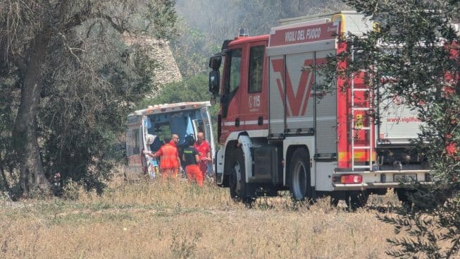 Il corpo di un uomo di 82 anni coperto da evidenti bruciature è stato rinvenuto oggi, 23 luglio, dai Vigili del Fuoco, nel corso delle operazioni di spegnimento di un incendio in un terreno alla periferia di Borgagne, frazione di Melendugno: sembra che l’anziano fosse andato in campagna per raccogliere dei frutti e portare a termine alcuni lavori e abbia avuto un malore, cadendo tra le sterpaglie che andavano a fuoco. Il rogo era stato segnalato da alcuni automobilisti in transito e, quando i Vigili del Fuoco sono giunti sul posto, si sono accorti che, poco distante dalle fiamme, vi era un’automobile con lo sportello del guidatore aperto. Poco dopo, la tragica scoperta del corpo. Sul posto sono intervenuti i sanitari del 118, i Carabinieri e gli agenti di Polizia Locale. Sebbene l’ipotesi più accreditata farebbe propendere per un malore, si indaga a tutto tondo.