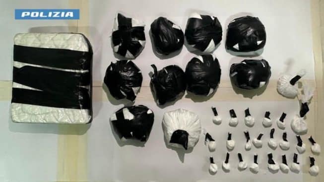 La droga era stata in parte confezionata in 10 involucri di forma sferica del peso di circa 50 grammi ciascuno, in parte suddivisa in 36 singole dosi pronte per lo spaccio e la restante parte in un panetto del peso di circa 500 grammi. Nel corso della perquisizione è stato rinvenuto anche materiale per il confezionamento e bilancino di precisione.