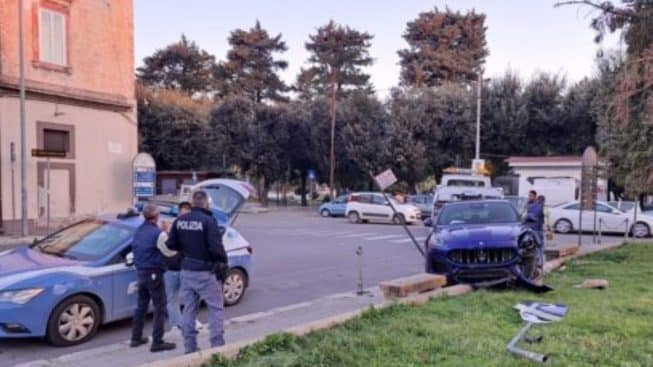 Sarà denunciato per guida in stato di ebbrezza il mesagnese che all’alba di oggi, 13 aprile, a bordo di una Maserati presa a noleggio si è schiantato su uno dei pali che reggono i cartelli con le indicazioni di parcheggio, terminando la sua corsa sul prato che circonda il castello normanno-svevo della città messapica: è infatti risultato positivo all’alcoltest disposto dagli agenti della Sezione Volanti del Commissariato di Mesagne, giunti immediatamente dopo il sinistro, verificatosi all’incrocio tra via Marconi e via Manfredi Svevo.