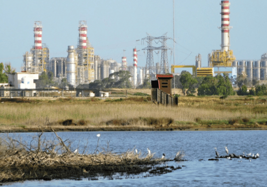 Ciò che crea maggior sgomento, attualmente, è vedere ancora le grandi montagne di sostanze venefiche ammassate nell’area, esposte agli eventi atmosferici ed alte, per un gioco di prospettiva, fin quasi a celare dalla vista il Petrolchimico.