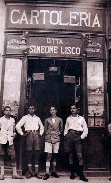Prima di intraprendere l’attività in proprio nella metà degli anni Cinquanta, Francesco Trinchera aveva maturato una lunga esperienza nell’antica cartoleria-libreria di Simeone Lisco, dove si commerciavano anche cartoline e materiale fotografico. Il piccolo Ciccio, com’era conosciuto dalla gente, lo si vede in una suggestiva foto in bianco e nero davanti all’ingresso del prestigioso negozio insieme ad altri suoi coetanei, nel tipico abbigliamento della generazione di quell’epoca. Poteva dirsi miracolato quando venne estratto vivo e illeso da sotto le macerie di quella che era stata la sua abitazione in via Cittadella, completamente distrutta durante uno dei tanti bombardamenti aerei subiti nel novembre 1941. Fortunatamente si salvarono anche gli altri componenti della famiglia, tra cui il fratello Antonio, l’ex sarto che nel 1962 decise di aprire una libreria sempre su Corso Roma, quasi in corrispondenza con via Conserva. Antonio morì prematuramente cinque anni dopo, la sua attività venne gestita dal fratello per qualche tempo, prima di cessare definitivamente ed essere aggregata alla principale.