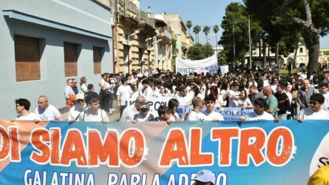 Nella giornata di ieri, 5 maggio, a Galatina, in provincia di Lecce, si è svolto un corteo in risposta all’aggressione nei confronti di un 16enne disabile picchiato da una baby gang lo scorso 16 aprile nella stazione cittadina: almeno mille tra studenti, docenti, rappresentanti delle istituzioni, delle forze dell’ordine e del mondo dell’associazionismo hanno sfilato nella manifestazione al grido di “Noi siamo altro: Galatina parla adesso”. Una richiesta di giustizia da parte della collettività, ma anche una netta presa di posizione della parte “sana” della comunità, largamente in maggioranza, e dei giovani che vivono nel rispetto della legalità e rifiutano la violenza.