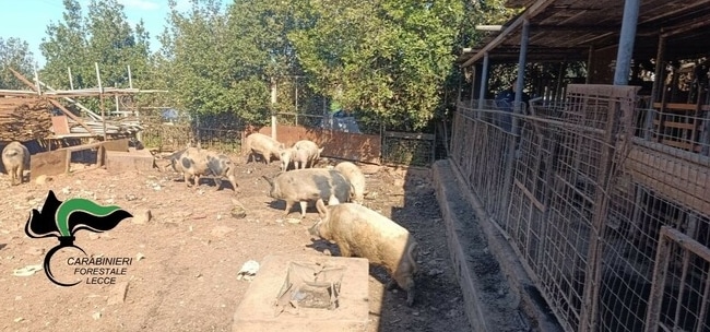 I Carabinieri Forestali del Nucleo Investigativo (Nipaaf) e del Nucleo Forestale di Lecce hanno scoperto un allevamento abusivo di maiali in località Madonna delle Grazie, a San Donato di Lecce, in cui si trovava anche un macello clandestino, sequestrando entrambi.