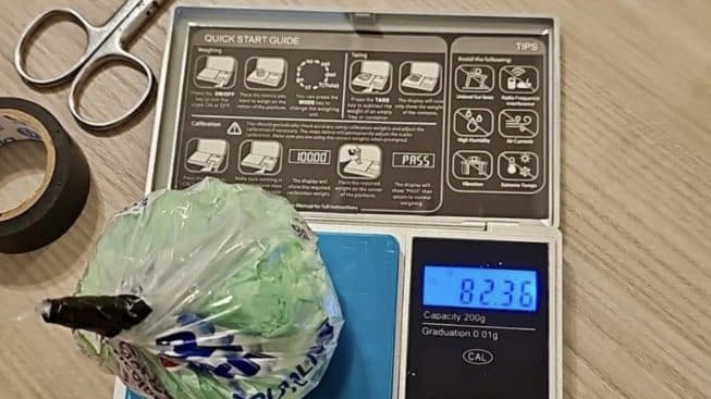 Nello specifico è stato rinvenuto un contenitore con nr. 11 involucri di cellophane di colore bianco, racchiusi da nastro isolante di colore nero, con all’interno circa 6 grammi di cocaina. Inoltre, è stato rinvenuto un contenitore in plastica nero al cui interno era occultato un involucro in plastica trasparente contenente sostanza stupefacente del tipo cocaina per un peso complessivo lordo di circa grammi 82,36, nr. 1 bilancino elettronico di precisione di colore grigio funzionante, un nastro isolante di colore nero simile a quello utilizzato per la chiusura degli involucri e una forbice in acciaio.