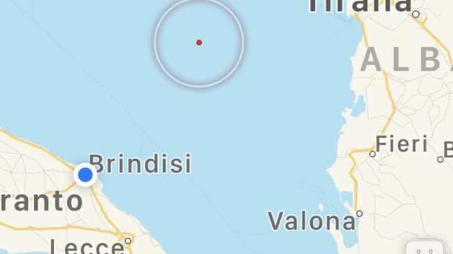 Scossa di terremoto di magnitudo 2.8 nel mare Adriatico tra Durazzo e Brindisi. La scossa, è stata rilevata alle ore 18,25 di oggi, lunedì 11 gennaio, a una profondità di 10 chilometri.