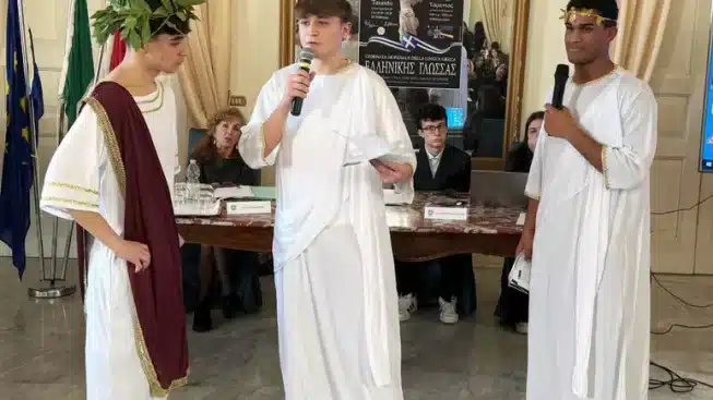 A Taranto la Giornata Mondiale della Lingua Greca ha visto gli studenti al centro di una tre giorni che, per la prima volta, ha coinvolto insieme le comunità di Taranto e Metaponto, legate dall’eredità della Magna Grecia. Il tema conduttore, “I ponti uniscono i popoli vicini portandoli a condividere culture e tradizioni”, ha guidato incontri e performance fino all’evento conclusivo nel Salone degli Specchi di Palazzo di Città.