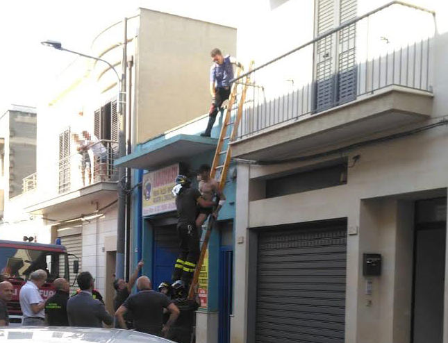 Nonostante la resistenza opposta dal soggetto, già in cura e con un piede fratturato, i carabinieri sono riusciti a metterlo in sicurezza fino all’arrivo dei vigili del fuoco che hanno usato l’autoscala per raggiungere il balcone.