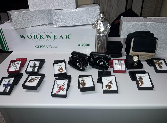 Un terzetto di ladri e truffatori. Sono stati arrestati dagli agenti delle Volanti di Brindisi dopo un tentativo di furto in un’abitazione: i poliziotti sono arrivati prima che i due in casa e il terzo che faceva da palo in una Fiat 500 riuscissero a compiere il furto. Ai poliziotti hanno detto di essere rappresentanti di una ditta per la vendita a domicilio. Ma il video di una telecamera li riprende mentre forzano una porta d’ingresso. Nell’auto avevano un aspirapolvere imitazione di una nota marca, finte telecamere riempite con pesi di metallo per farle sembrare autentiche e statuette del Papa argentate. Insomma merce per probabili truffe.