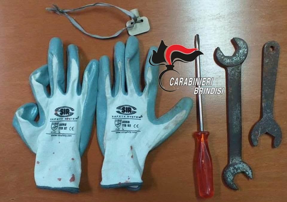 Gli arnesi utilizzati per l’effrazione della porta del terrazzo sono stati recuperati e sottoposti a sequestro. Dal sopralluogo effettuato congiuntamente al proprietario sembra che dall’abitazione non sia stato asportato nulla. I due sono stati sicuramente disturbati dai rumori per l’arrivo improvviso del proprietario. Gli arrestati dopo l’espletamento delle formalità di rito sono stati associati nella casa circondariale di Brindisi, a disposizione dell’Autorità Giudiziaria.