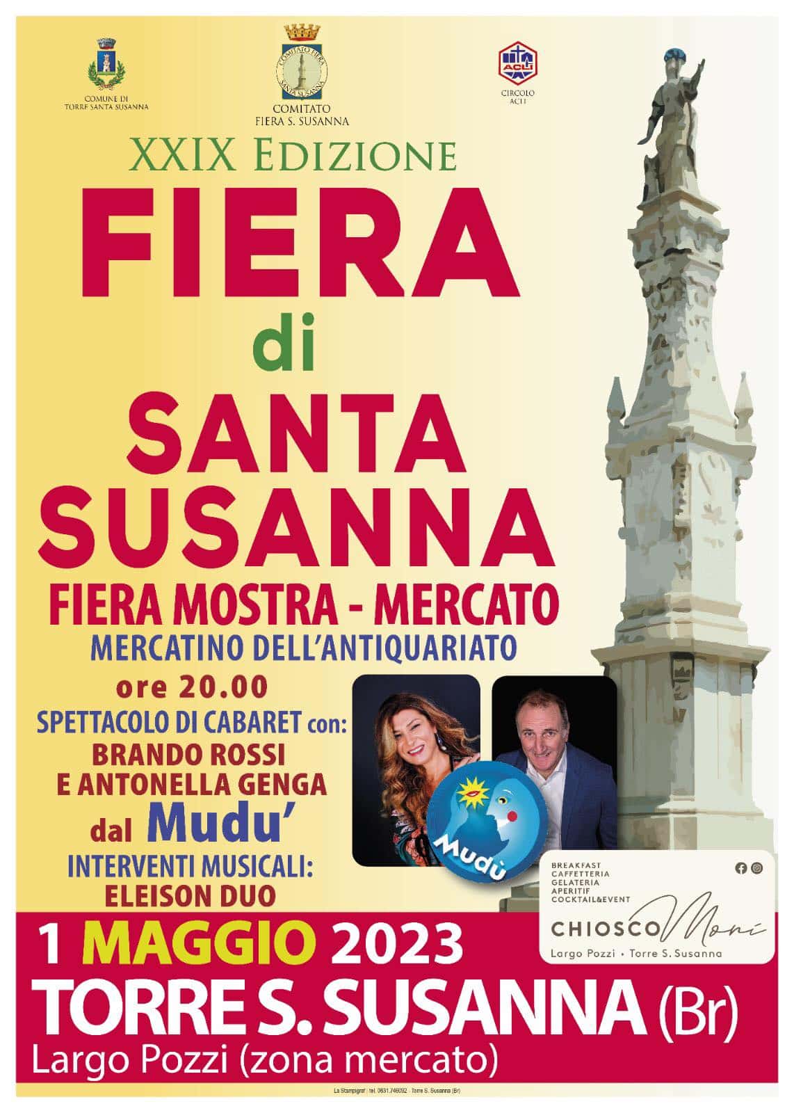 TORRE SANTA SUSANNA – Tutto pronto per la “Fiera di Santa Susanna” che si terrà il 1° maggio 2023 a Torre Santa Susanna in Largo Pozzi (zona mercato).