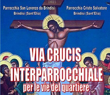 Si svolgerà Domenica 2 aprile la Via Crucis interparrocchiale per le strade del quartiere Sant’Elia di Brindisi, con inizio alle ore 20 dalla Parrocchia di Cristo salvatore e percorrendo via Mantegna e viale Caravaggio, si concluderà presso la Parrocchia di San Lorenzo da Brindisi.