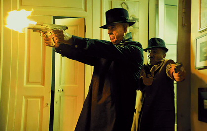 E in effetti la pellicola sembra proprio un fumetto: sparatorie coreografate come se fossero balletti, personaggi al limite fra il grottesco e il reale, movimenti ampi e irreali rendono tutto finto, esattamente come forse l’autore voleva che fosse. E’ una favola d’altri tempi, ci sono le bianchine, i cappelli e gli impermeabili. E Napoli all’improvviso diventa il West.