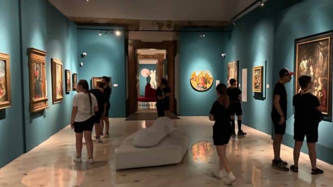 “G7 – Sette secoli di arte italiana” è viaggio tra i secoli descritto per aree cronologiche che finiscono necessariamente per diventare tematiche: “Gli albori dell’arte italiana”, “Il primo Rinascimento”, “Verso la maniera moderna”, “Il Seicento: Naturalismo Classicismo e Barocco”, “Il Neoclassicismo e il gusto per l’antico”, “L’Ottocento. Citazioni letterarie e rappresentazioni del vero” e, infine, “Il Novecento, un secolo di sperimentazioni”, in cui è collocata l’unica opera di artista vivente esposta nella mostra, “Il bacio” di Roberto Ferri, il pittore tarantino le cui opere, pervase di una chiara aura caravaggesca, già erano presenti nell’allestimento dello scorso anno, dedicato per l’appunto al genio lombardo del Seicento e ai suoi contemporanei.