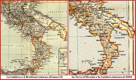 «Quando i Longobardi occuparono Taranto e Brindisi, intorno al 670, del territorio della vecchia romana Calabria, che pur aveva dato il proprio nome all’intero ducato bizantino comprendente anche il Bruzio, restò ben poco, praticamente e a mala pena solo Otranto. E fu a quel punto che ai Bizantini non venne migliore idea che, per occultare quella grave perdita e salvare l’onore o l’apparenza, inventarsi traslare il nome del territorio perduto “Calabria” al territorio in buona conservato “Il Bruzio” per poter così ufficialmente affermare che la “Calabria” continuava ad essere saldamente bizantina».