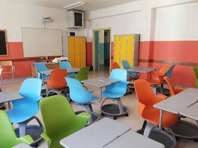 La mia è una Prima Internazionale a curricolo quadriennale (Scienze Applicate): 18 bellissimi volti puliti! Ragazzi educati, rispettosi: si alzano subito in piedi all’ingresso dell’insegnante. Abbiamo le postazioni mobili con tavoletta e portazaino: il banco è scomparso da tempo. Ciascuno si sposta grazie alle ruote basculanti: è la classe “liquida”. Tutti compagni di banco di tutti. “Ci si può spostare liberamente!” li avviso. Ma loro stanno vicini vicini, tutti dallo stesso lato dell’aula. Si sentono già parte di una comunità, avvertono lo spirito della condivisione di un cammino da compiere insieme per un obiettivo comune.