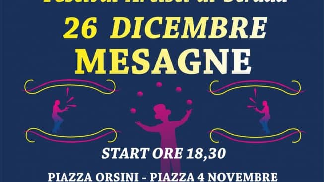 Ci saranno il Mimo in via Castello, il Led Show in piazza IV Novembre, la Sand Art in piazza Criscuolo, lo spettacolo di Roue Cyr in piazza Commestibili, mentre l’esibizione di Acrobatica Verticale Aerea potrà essere ammirata in piazza Orsini del Balzo. La parata di artisti è a cura di da Lab Communications Eventi in collaborazione con il DUC – Distretto Urbano del Commercio e l’Amministrazione Comunale. In via Albricci sarà presente lo stand di pettole dell’associazione “Gruppo Storico Città di Mesagne”.
