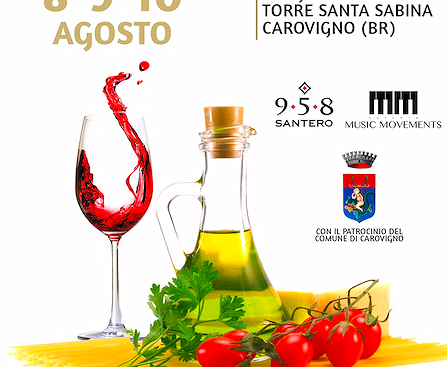 Ente culturale Puglia e Salento Music Movements, con il patrocinio del Comune di Carovigno, organizzano la prima edizione di Puglia Suoni & Sapori, fiera gastronomica in programma l’8, il 9 e il 10 agosto presso lo Scoglio del Cavallo, in località Torre Santa Sabina, Carovigno, in provincia di Brindisi.