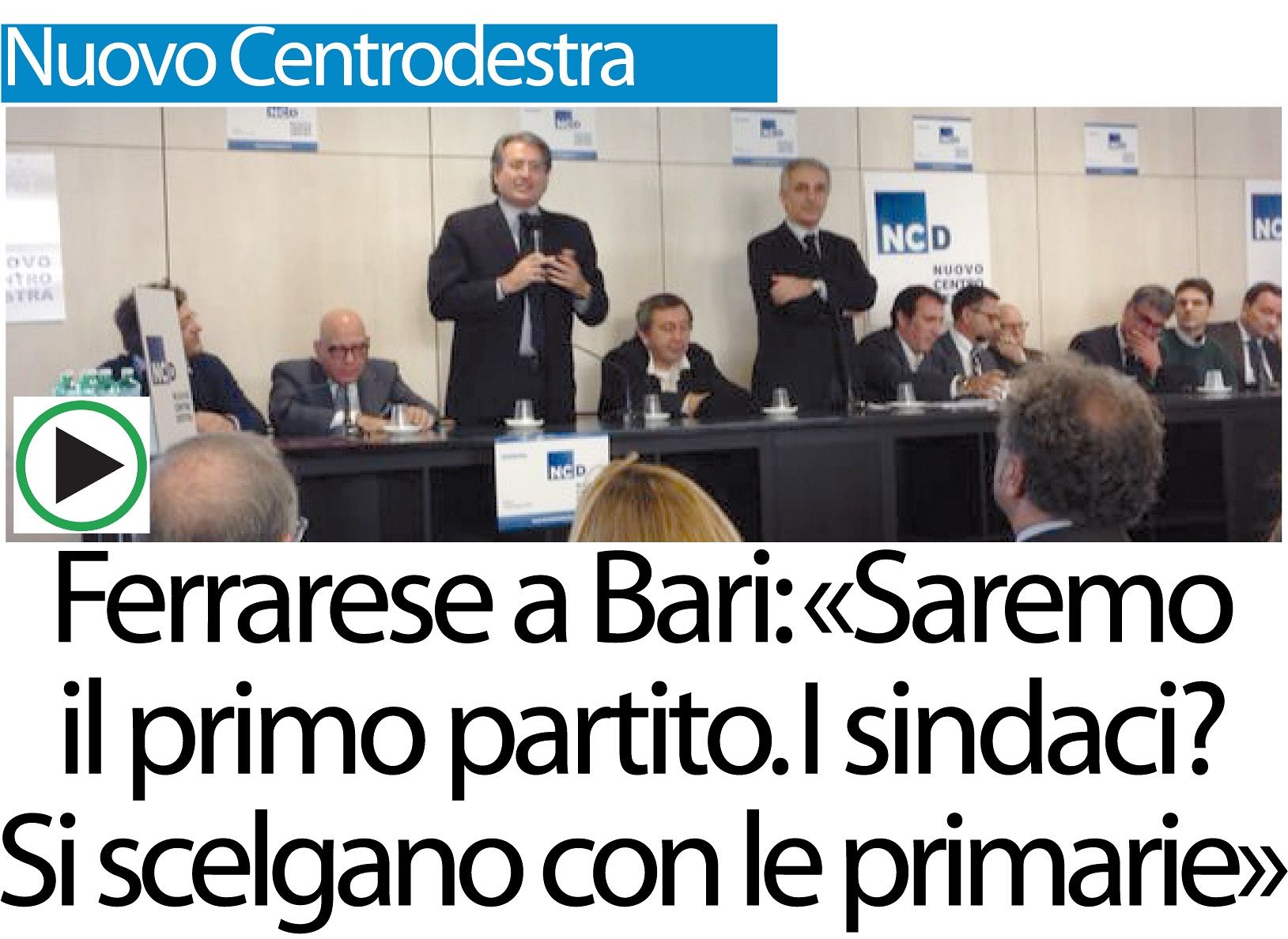 Ncd, Ferrarese a Bari: “Non saremo la costola di nessuno. I sindaci? Scegliamoli con le primarie”
